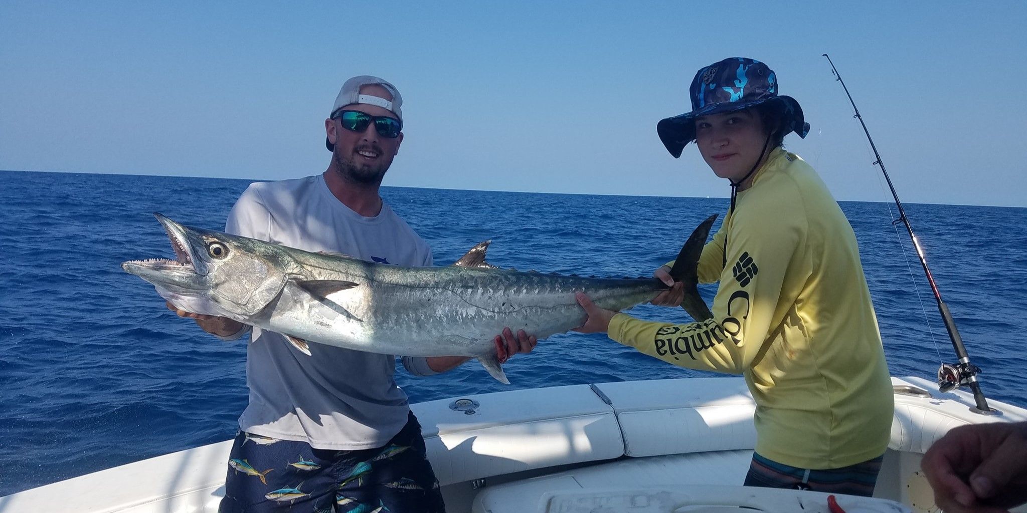 Now, if we're lucky, we might run into some Wahoo. These speed demons are like the Ferrari of the fish world. They're here year-round, but peak season is late summer to fall. Wahoo are prized for their incredible runs – when one hits, your reel will scream like nothing else. Plus, they're some of the best eating fish in the ocean.